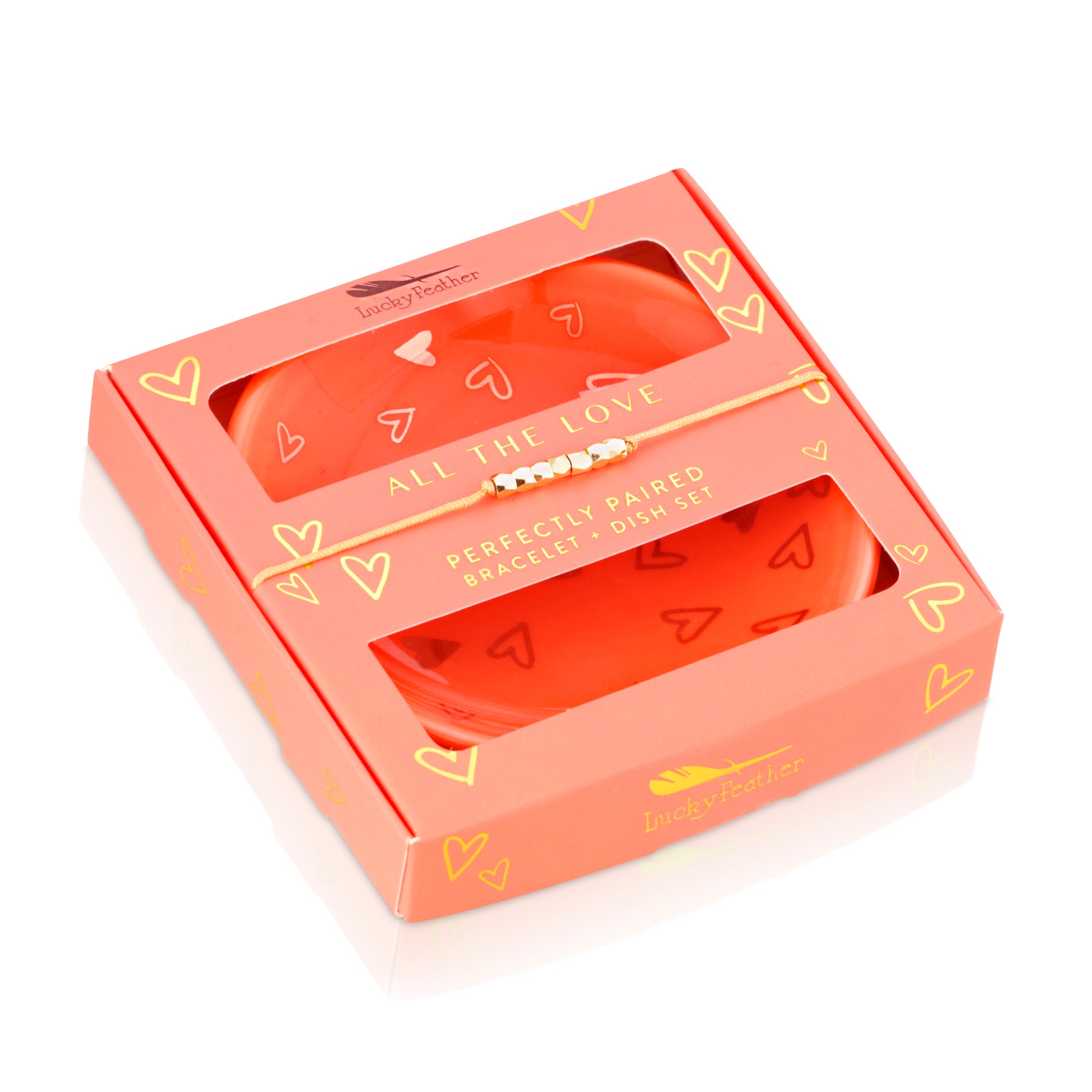 A beautiful bracelet and trinket dish set designed to inspire and delight. Each set includes a delicate bracelet and a ceramic dish with a stylish design and uplifting message- Perfect for holding jewelry, keys, or small treasures.