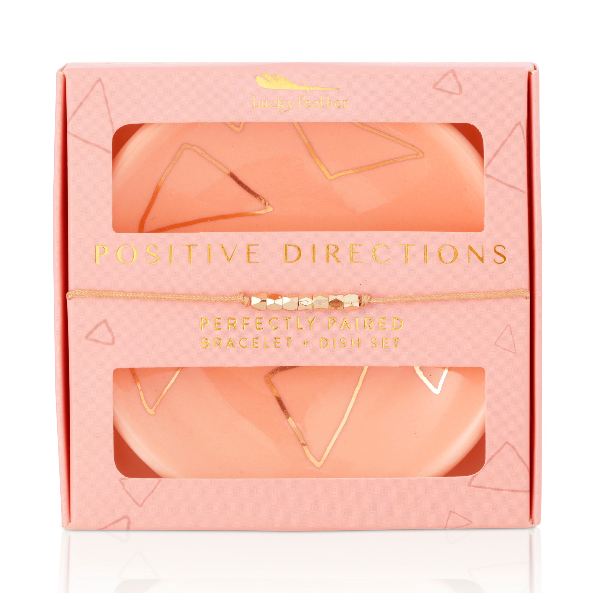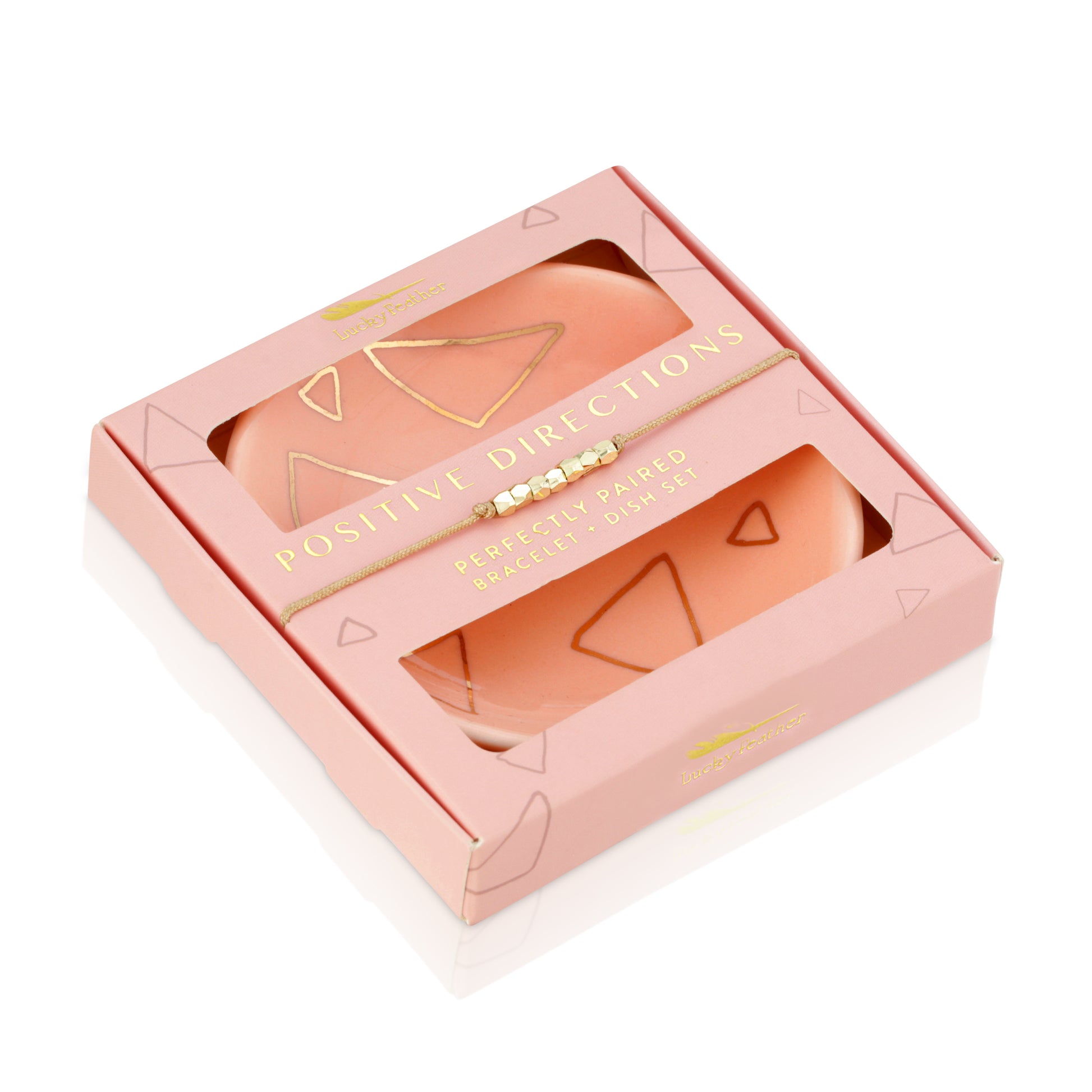 A beautiful bracelet and trinket dish set designed to inspire and delight. Each set includes a delicate bracelet and a ceramic dish with a stylish design and uplifting message- Perfect for holding jewelry, keys, or small treasures.