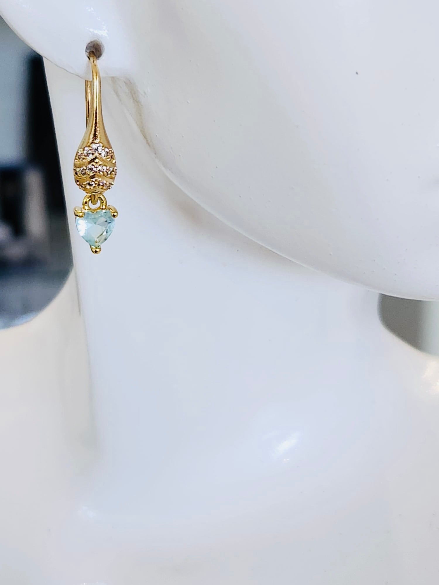 Handcrafted in Aguadilla at Meraki Jewelry Studio, these stunning earrings embody timeless elegance. The French fish hook design is adorned with sparkling cubic zirconias, leading to a delicate heart-shaped zirconia drop that captures light beautifully. Plated in 14K gold, they offer a luxurious finish perfect for both everyday wear and special occasions.