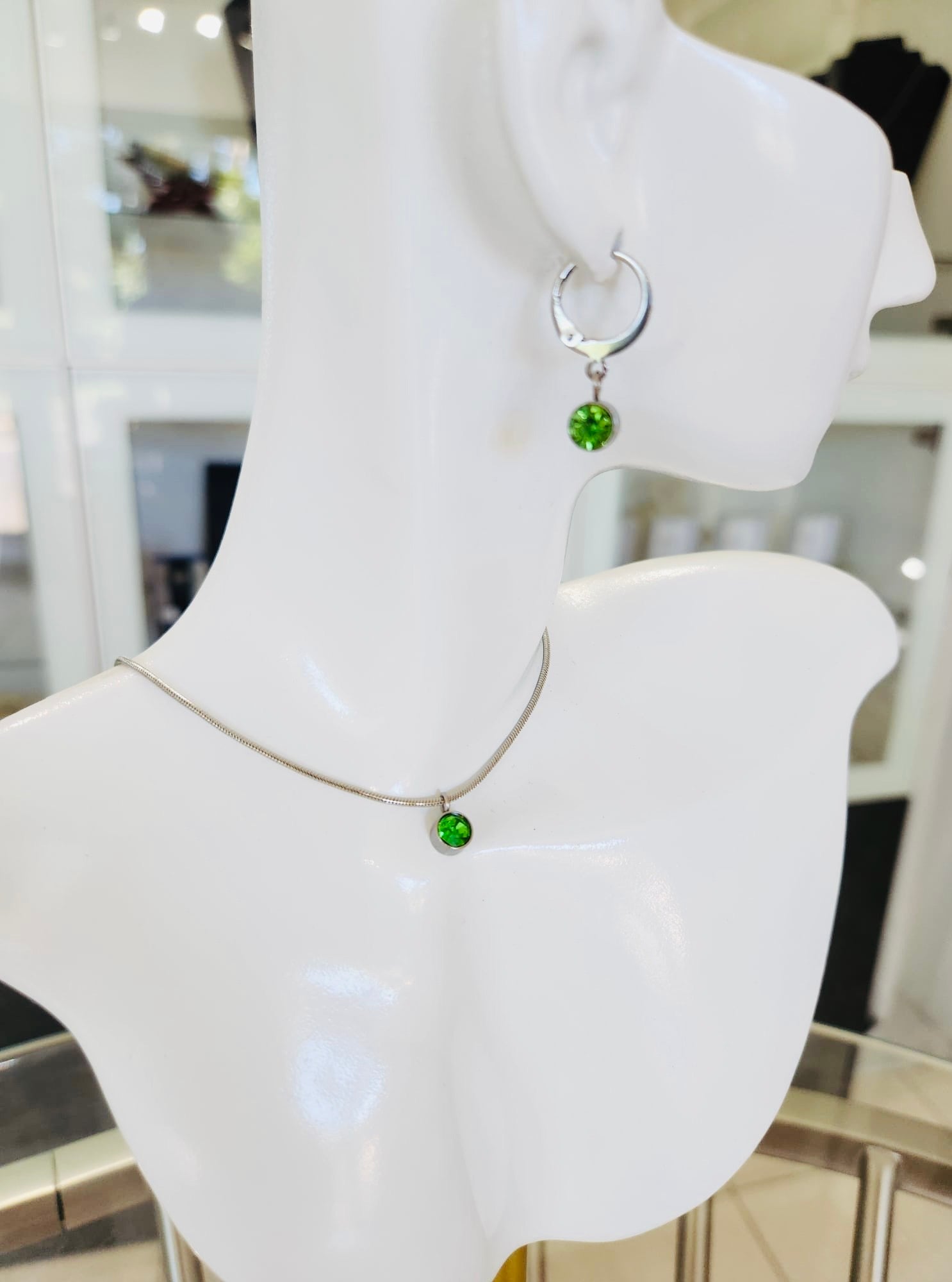 Meraki Designs: Stainless Steel Necklace & Earrings Set – Green Zirconia